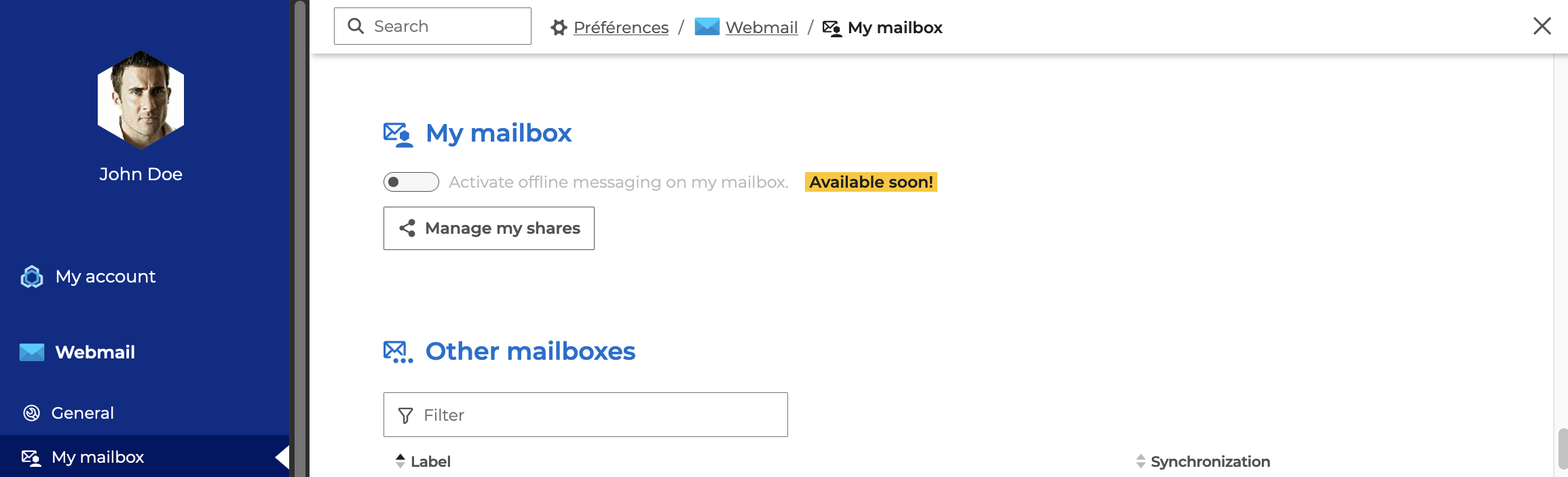 To do this, go to the messaging settings: Preferences > Mail> My mailbox