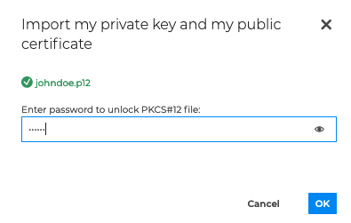- Select the file in PKCS#12 format and enter the password to unlock it: