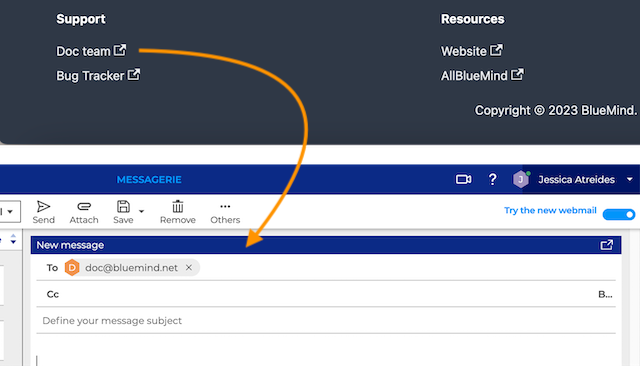 BlueMind Mail app allows you to create mailto links in messages and can be used to send a message from any browser page.