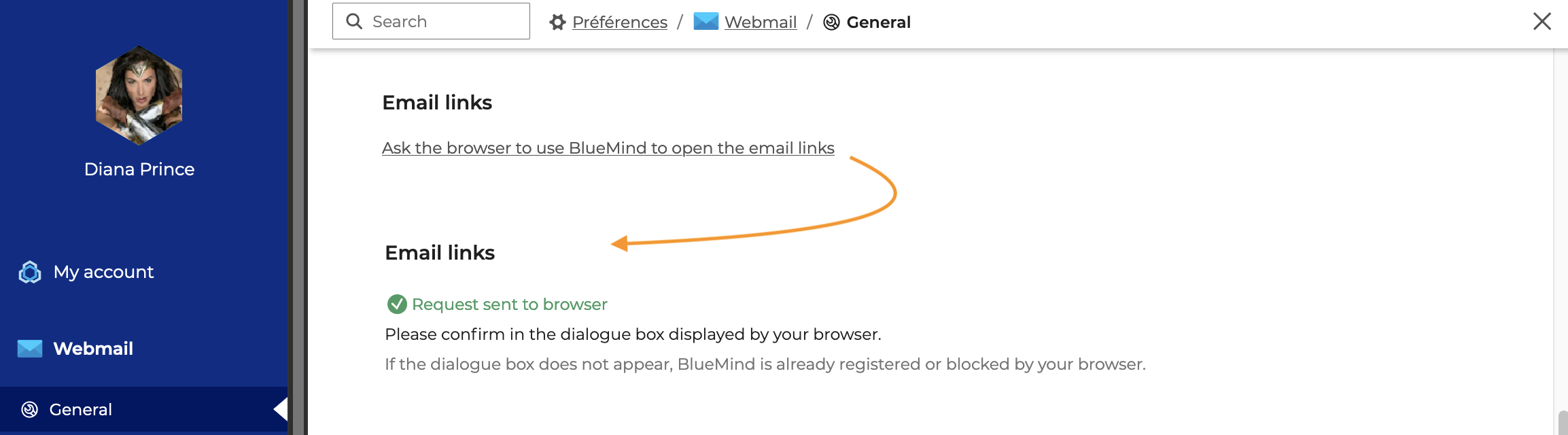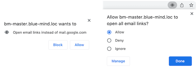 Authorize mailto links in the popup window, then click on in the BlueMind address bar and select 'Authorize':