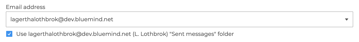 When the mail address of a collective box or a delegating user - shared at least with the "Can modify" level - is selected, an option appears allowing you to choose the folder to be used for storing sent messages: check the box to use the shared mailbox folder or leave it unchecked to use the user's default folder