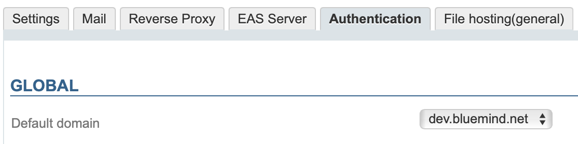 Dieser Tab ermöglicht es, die Standarddomäne für die Verwendung bei einer Multi-Domänen-Installation festzulegen. Dies ermöglicht es den Benutzern insbesondere, einen vereinfachten Anmeldebenutzernamen zu verwenden.