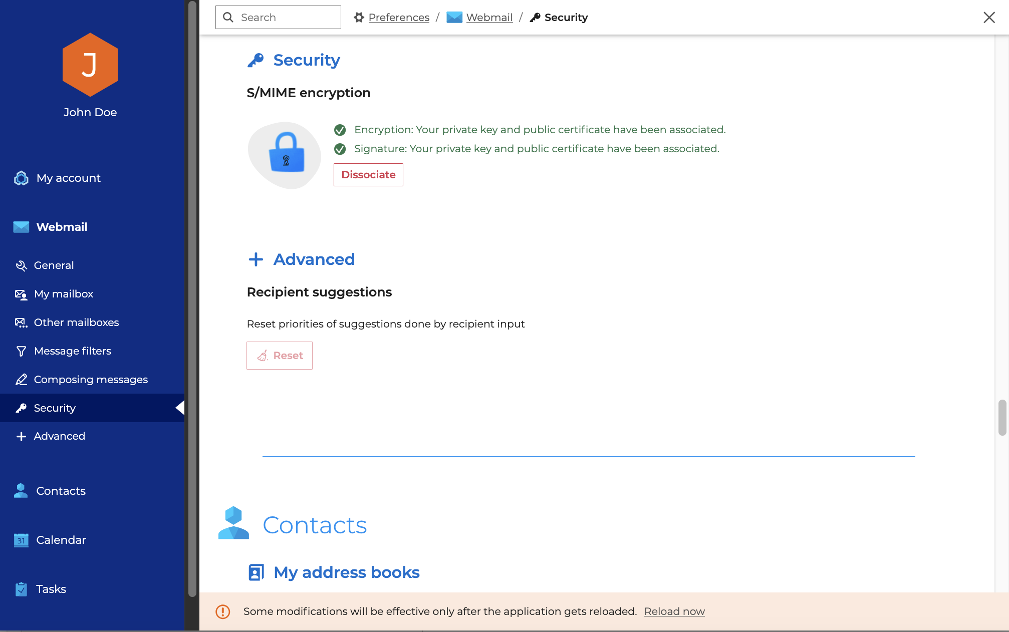 Klicke auf "Jetzt neu laden" im Warnbanner oder starte das Webmail neu