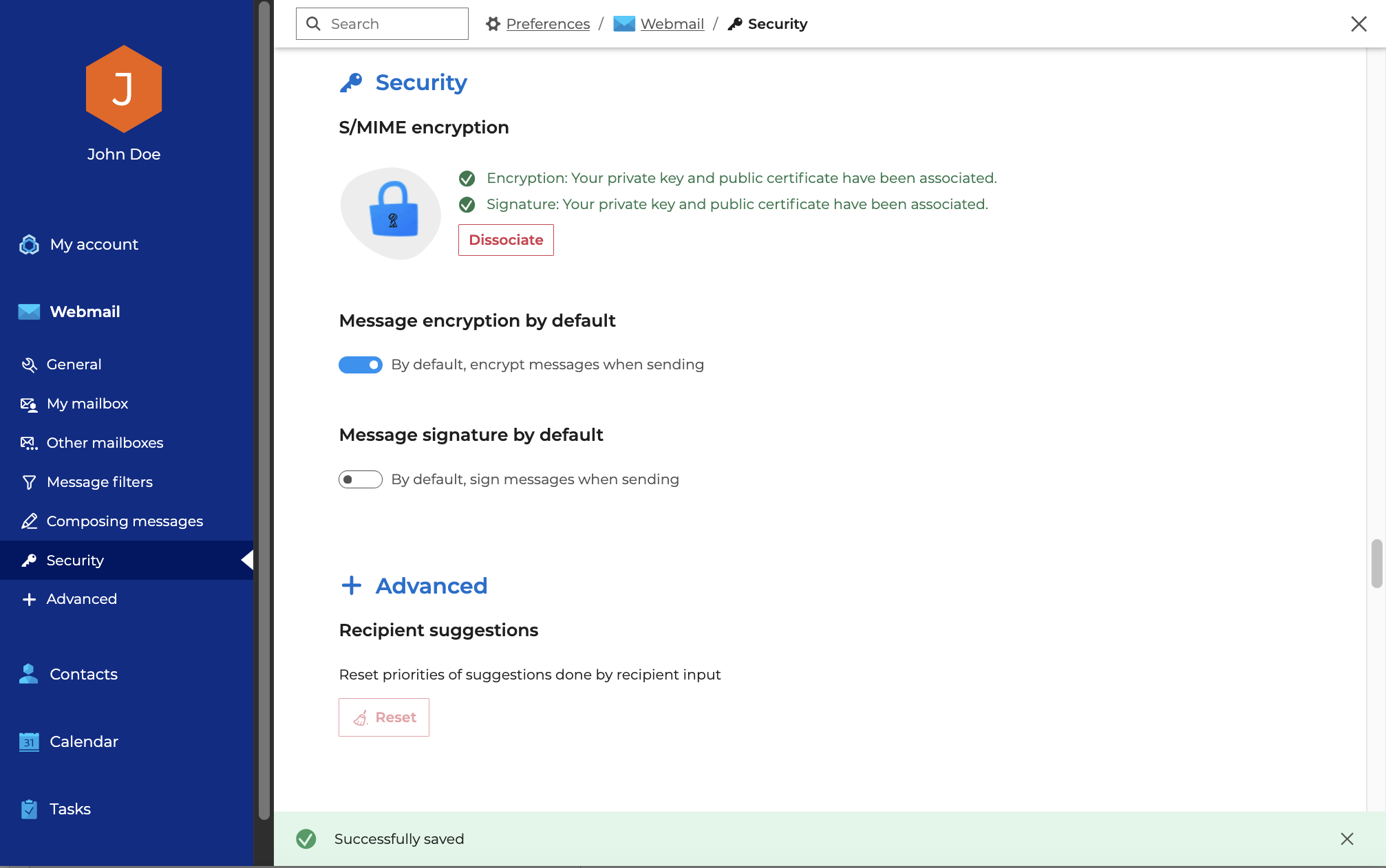 Um die Sicherheit des E-Mail-Austauschs zu erhöhen, ermöglicht BlueMind das Verschlüsseln von Nachrichten mit vertraulichem Inhalt und das Überprüfen der Identität von Absendern und Empfängern mit elektronischer Signatur.