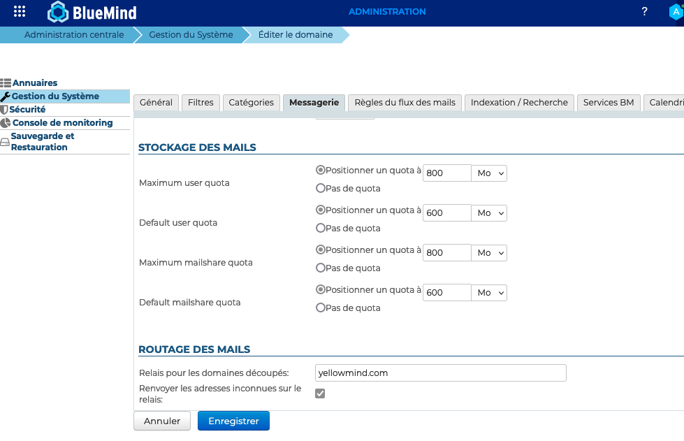 - Enfin, dans tous les cas se rendre dans l'onglet « Messagerie » > section « Routage des mails » et :