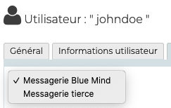 Pour chaque utilisateur concerné, une fois l'utilisateur créé dans BlueMind il faut indiquer le type de messagerie. Pour cela :
