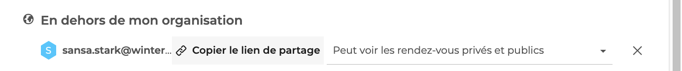 En cas de modification de droits, le lien de partage change. Le nouveau lien doit être renvoyé au destinataire extérieur pour qu'il continue d'accéder au calendrier.