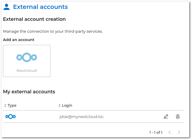 Um die Verbindung zu einem externen Konto einzurichten, gehen Sie in den Abschnitt Einstellungen > Mein Konto > Externe Konten: