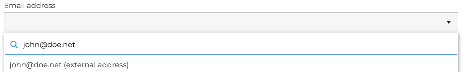 - an external address: type the desired address and validate by clicking on the proposed address or by simply leaving the field: