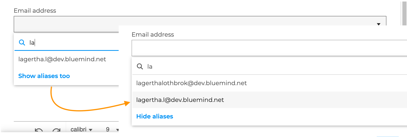 - **your default mail address or aliases: select the address from the list