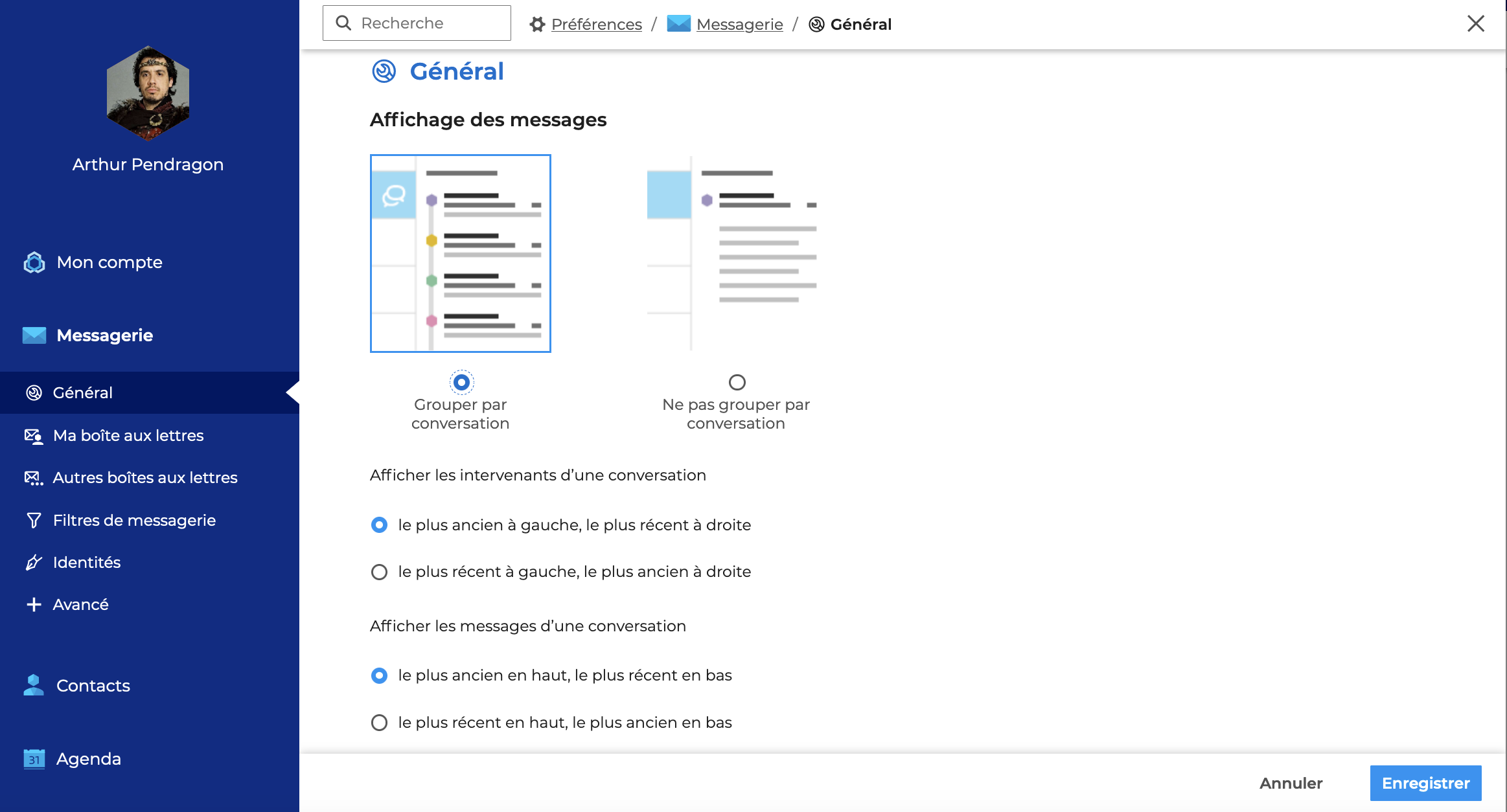La liste des messages peut être organisée par message (mode par défaut) ou par conversation.