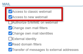 - Weisen Sie die Rolle(n) "Klassischer Webmail-Zugang" zu, die im Abschnitt "Mail" der Rollen verfügbar ist/sind: