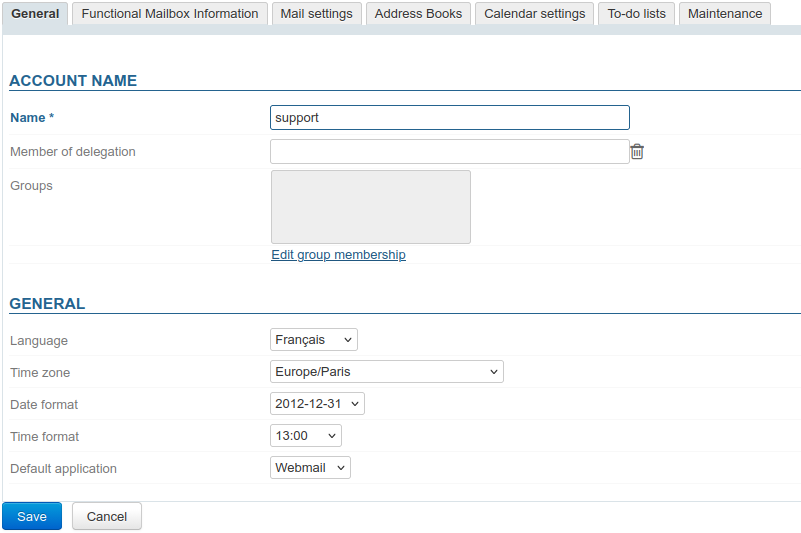 NB: Wie bei seiner Erstellung darf dieser Name weder Großbuchstaben noch Leerzeichen enthalten. - Delegation: die Organisationseinheit, zu der die Box gehört.