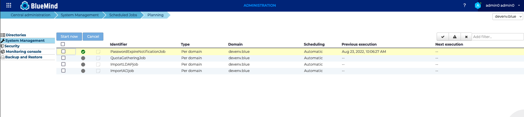 Nicht alle Administratoren haben Zugang zu denselben Aufgaben: Der Systemadministrator sieht alle Aufgaben der überwachten Domänen, der Domänenadministrator hat nur Zugang zu den Aufgaben seiner Domäne.