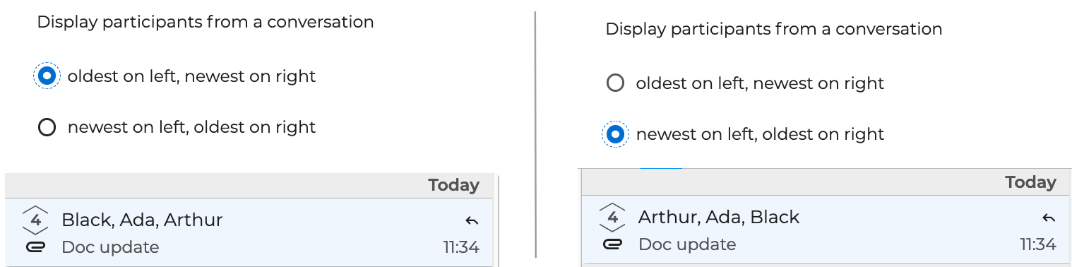 - die Reihenfolge, in der die Nachrichten angezeigt werden (chronologisch oder umgekehrt chronologisch):