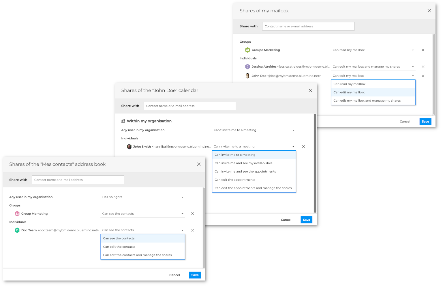BlueMinds E-Mail-Programm erhält eine lang erwartete und beliebte Funktion: die Freigabe von Ordnern! Die Nutzer können nun individuell auf ihre Ordner zugreifen, ohne ihre gesamte Mailbox freigeben zu müssen. Der Empfänger der Freigabe findet dann durch den Abonnement-Mechanismus den Ordner in seinem BlueMind E-Mail-Programm, aber auch in seiner Client-Software eines Drittanbieters (z.B. Thunderbird oder Outlook) oder in seiner mobilen Anwendung.