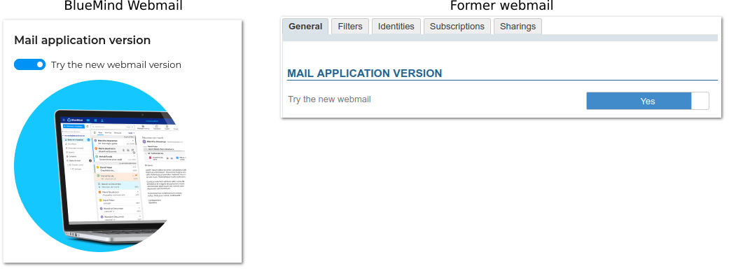 In BlueMind 5, only the new webmail client developed by BlueMind is installed and active by default. It is possible to install the old webmail based on Roundcube 0.8.5, and give users access to it.