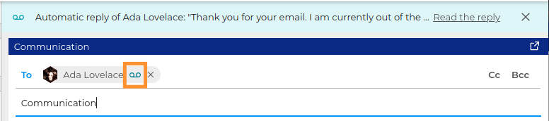 An alert is displayed if some of the added recipients are not able to read the email, either because they are absent or because their mailbox is full: