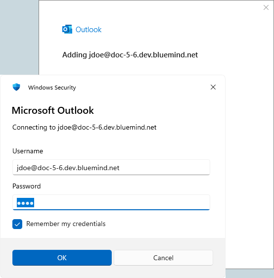 Enter the password, check "Remember my credentials" so that you don't have to enter the password every time you receive an email, and click "OK":