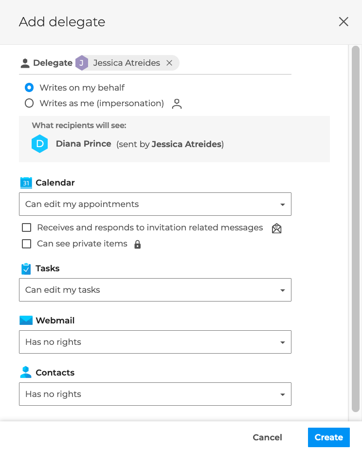 The new delegation management allows users to nominate delegates and define more detailed and targeted rights, both to write on their behalf and to mail or calendar :