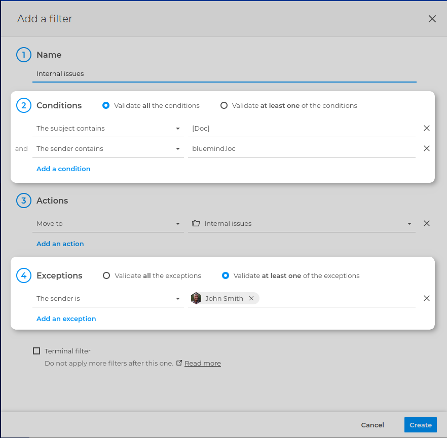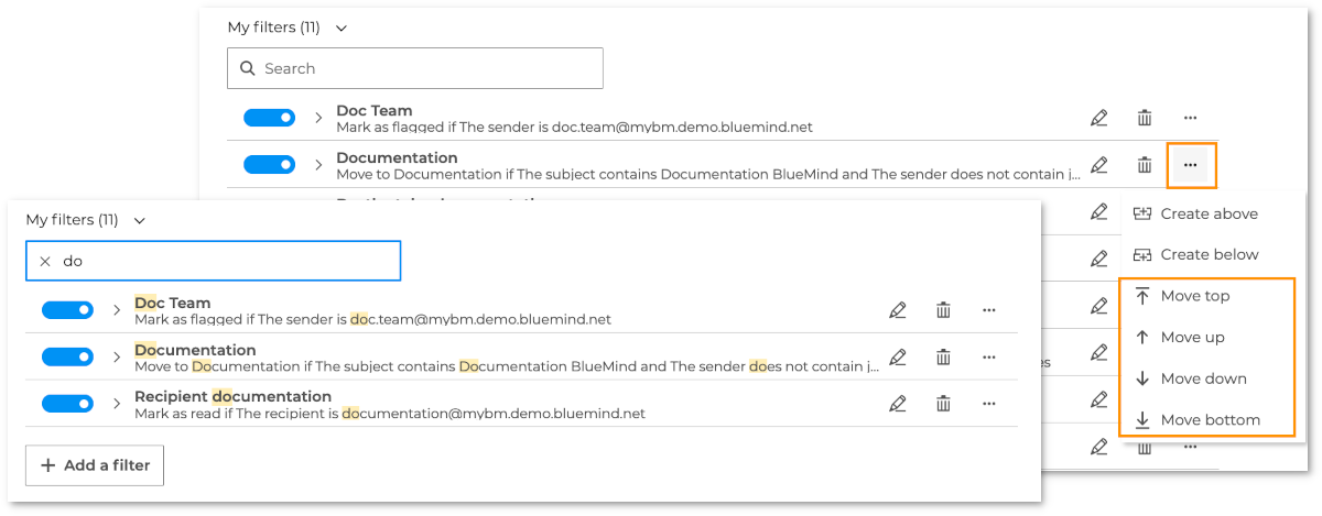 The mail filter management interface has been enhanced with new functions for searching and ordering filtersΒ :