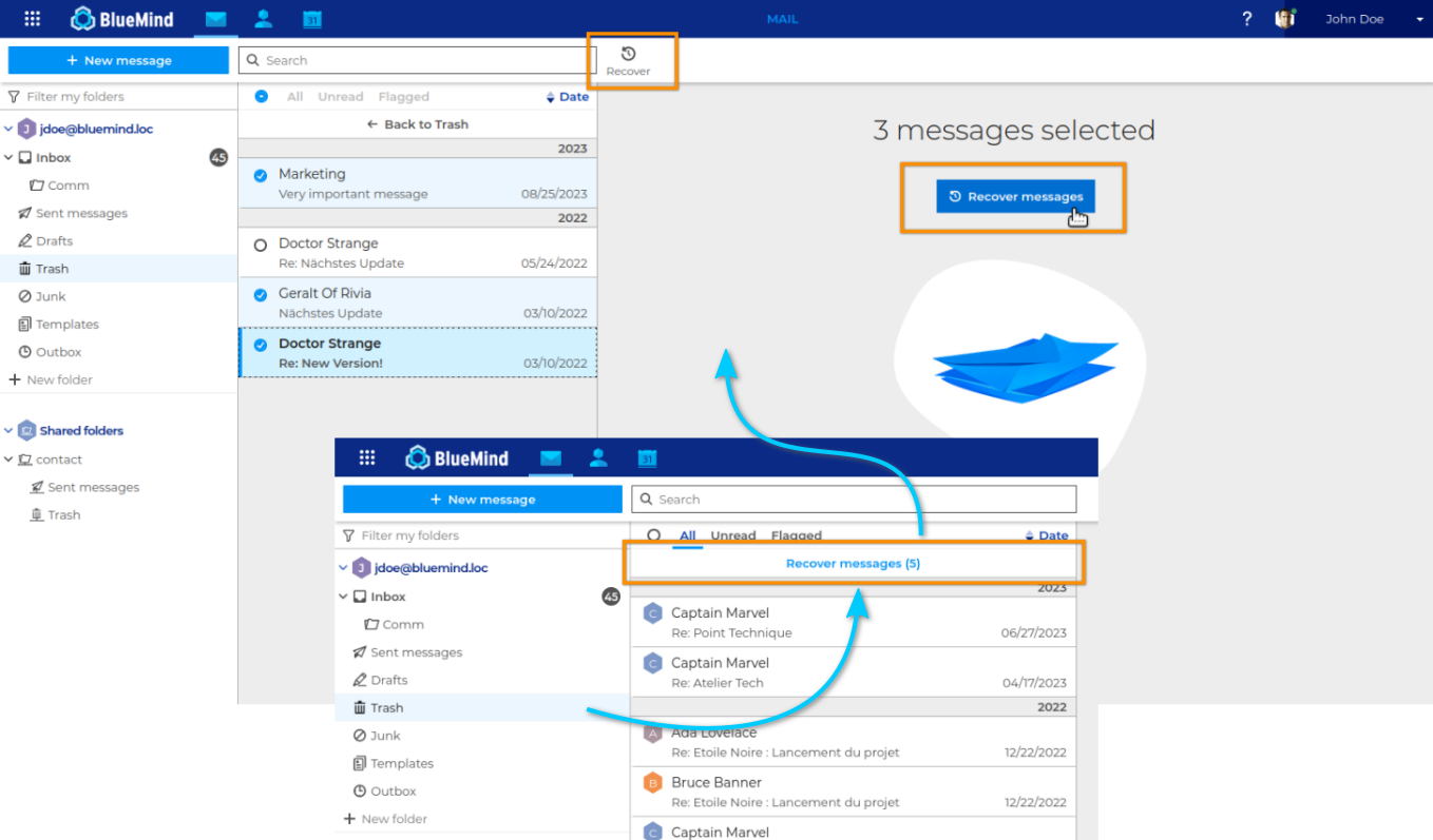 The trash now has a double bottom, allowing users to retrieve e-mails marked as permanently deleted for a period of time after they have been deleted.