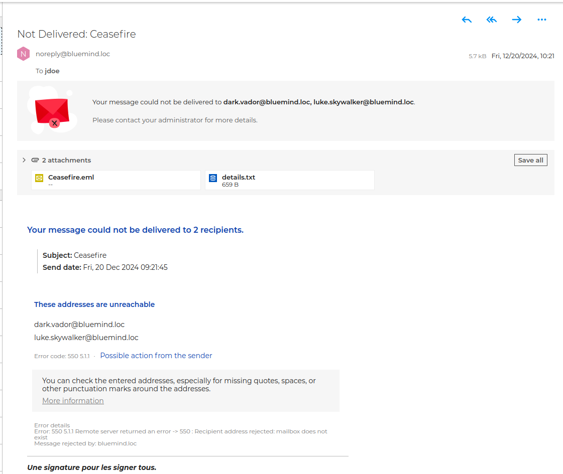 β³ For further information, see Sending an important email - to be alerted if the recipient has activated an absence message or if his/her mailbox has reached its quota: