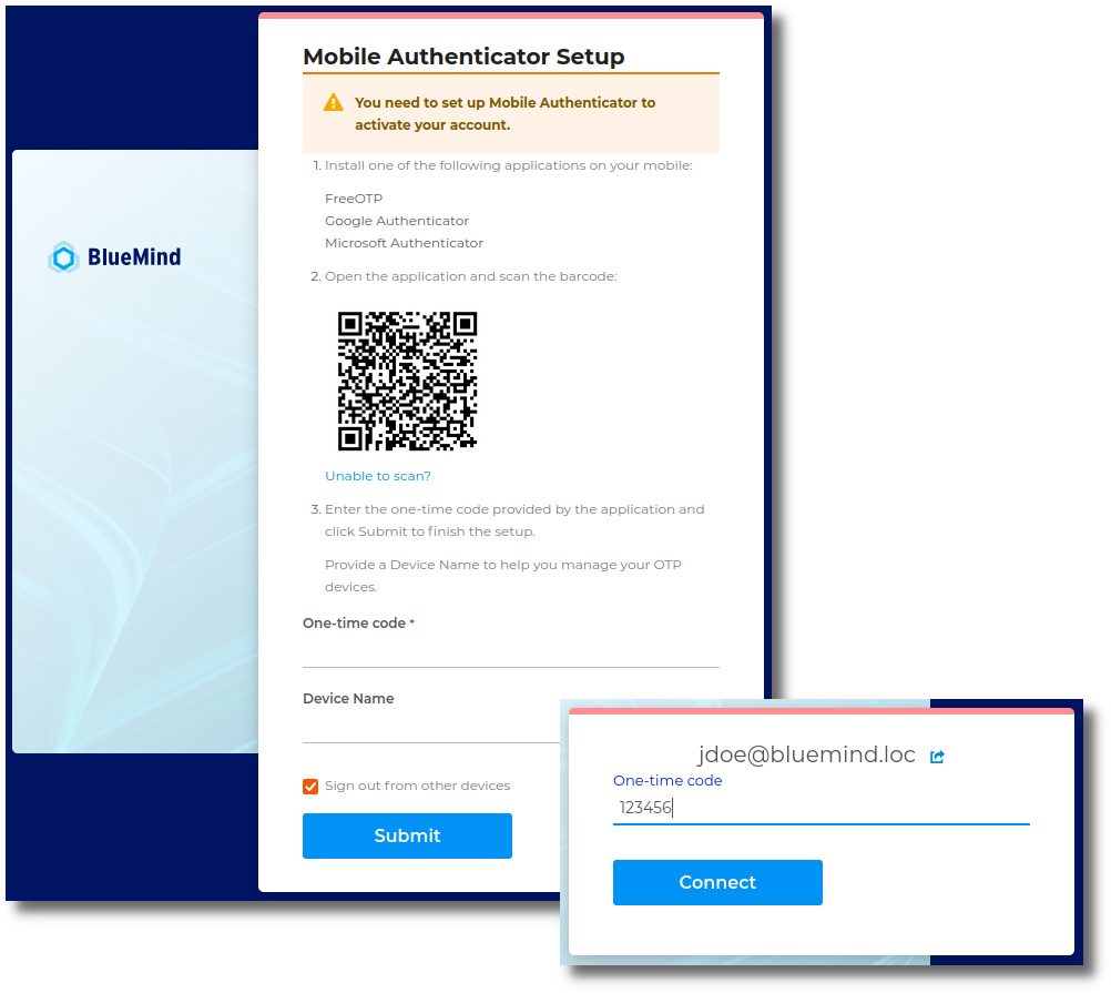 Multi-factor authentication, which can be activated by administrators, requires users to enter a one-time code in addition to their password: