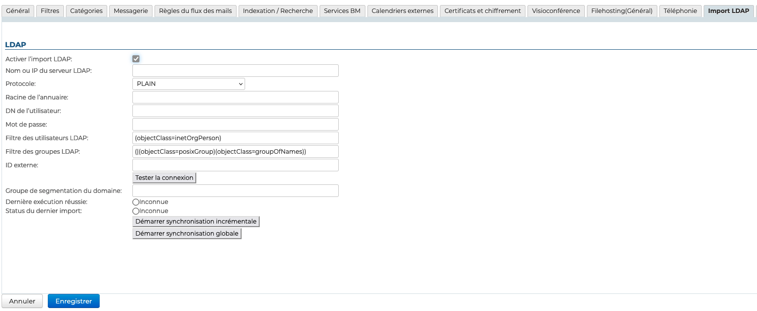Cet onglet est optionnel. Il permet d'administrer un annuaire externe LDAP.