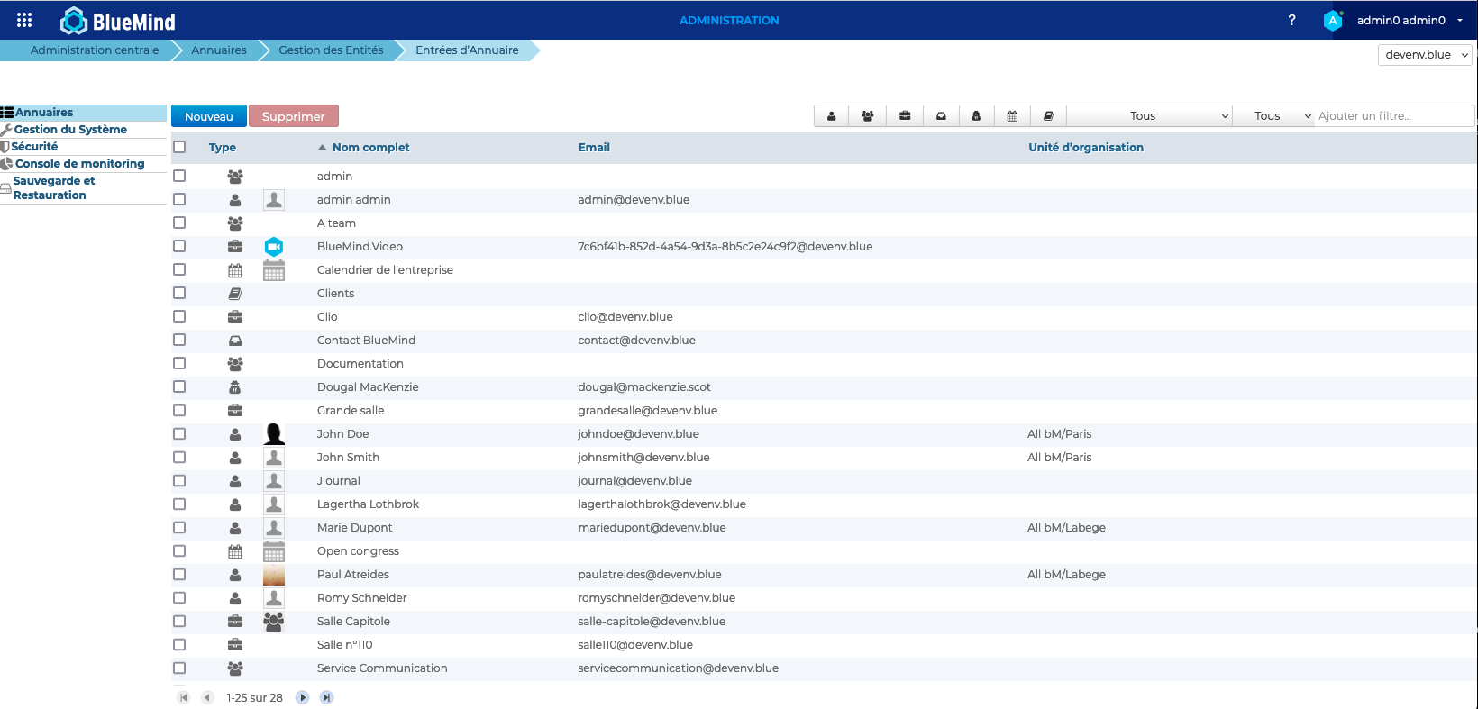 L'Annuaire regroupe l'ensemble des entités du domaine. Afin de faciliter la recherche, l'application permet de trier et/ou filtrer les entités de la liste.