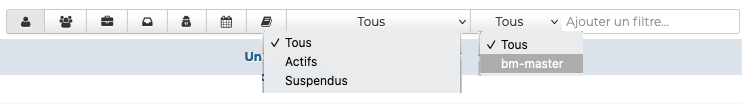 Pour réinitialiser le filtre, choisir l'option "Tous" - Ajouter un filtre... : Le champ de saisie final permet de filtrer les entrées sur une chaîne de caractères.