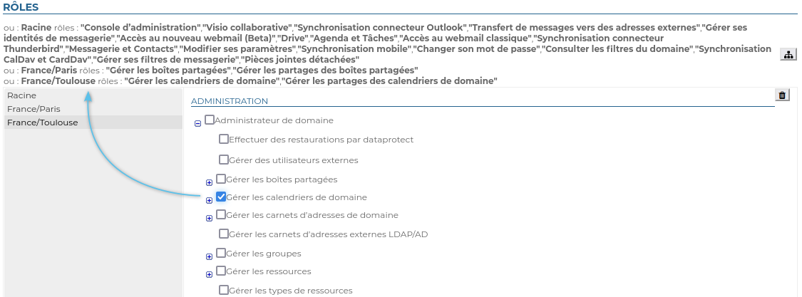 Une fois les rôles définis sur la ou les délégations données, tous les utilisateurs membres du groupe en bénéficieront.