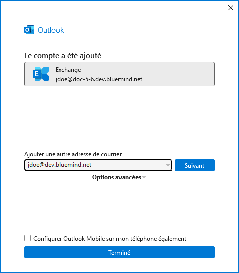Et voilà ! Outlook communique désormais avec BlueMind !