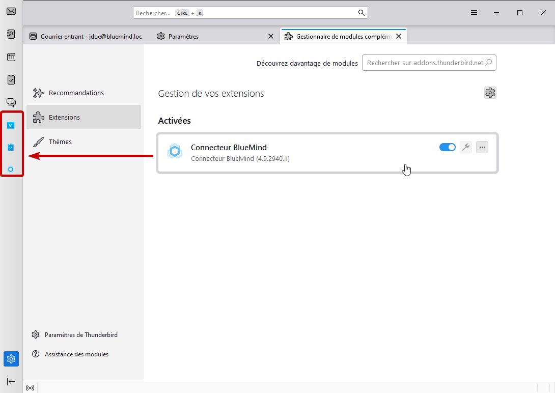 dans Thunderbird, aller dans Paramètres > Modules complémentaires et thèmes :