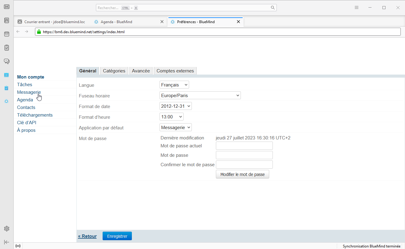 - Accéder à la gestion préférences de BlueMind
