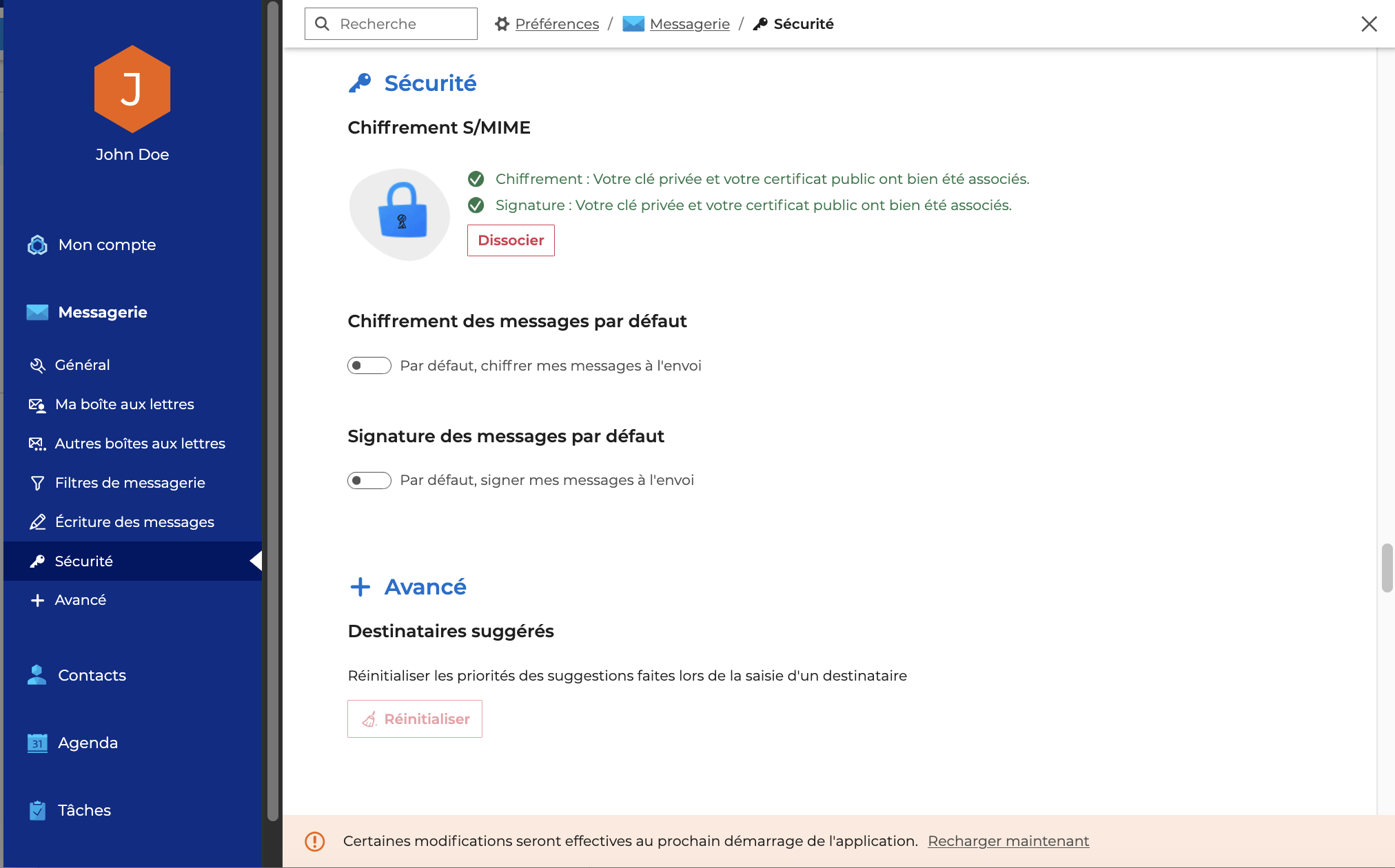 - aller dans les paramètres : Préférences - Messagerie - Sécurité et cliquer sur "Associer"