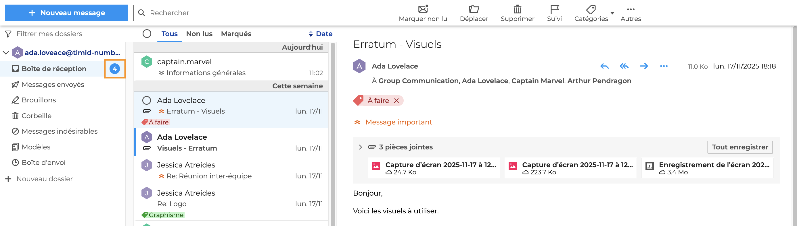 💡 Pour savoir comment noter un message important depuis la messagerie BlueMind, consulter le paragraphe Envoyer un message important.