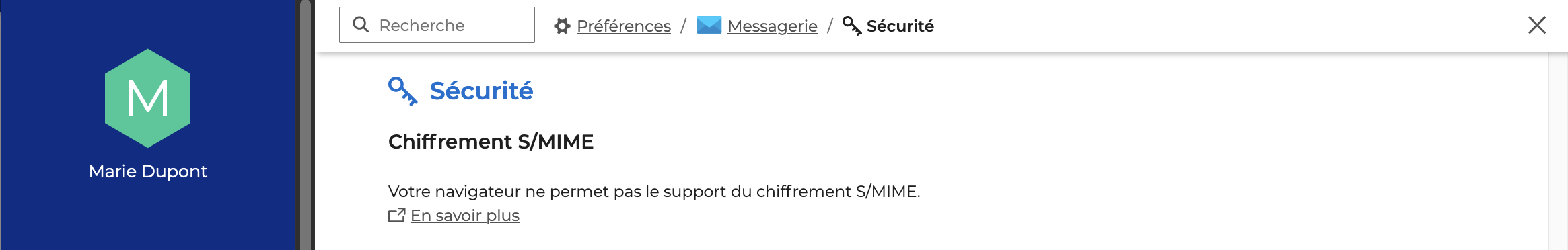 Le navigateur ne permet pas l'utilisation du S/MIME