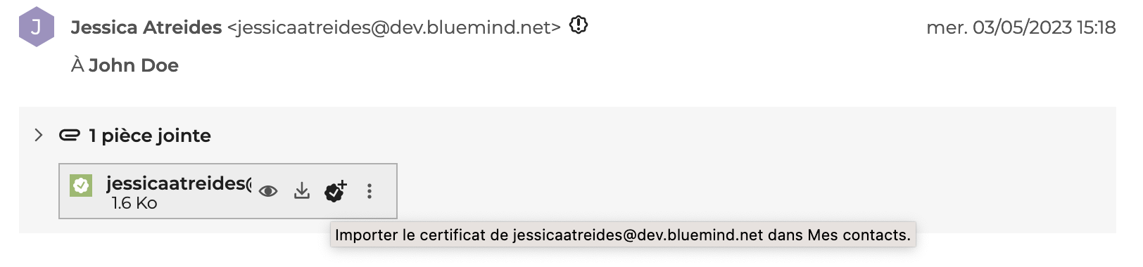 Lors de la réception d'un mail chiffré en pièce jointe, le webmail ne supporte pas son déchiffrement lors de la prévisualisation de cette pièce jointe.