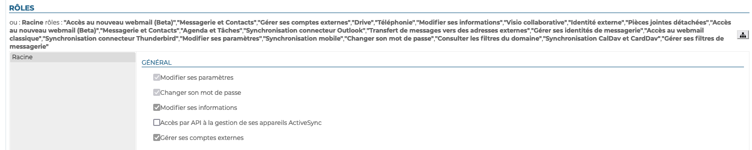 - Cocher le rôle "Gérer ses comptes externes", dans l'onglet "Général" :