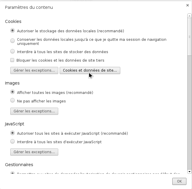 - Dans la section Confidentialité, cliquer sur le bouton Paramètres de contenu...