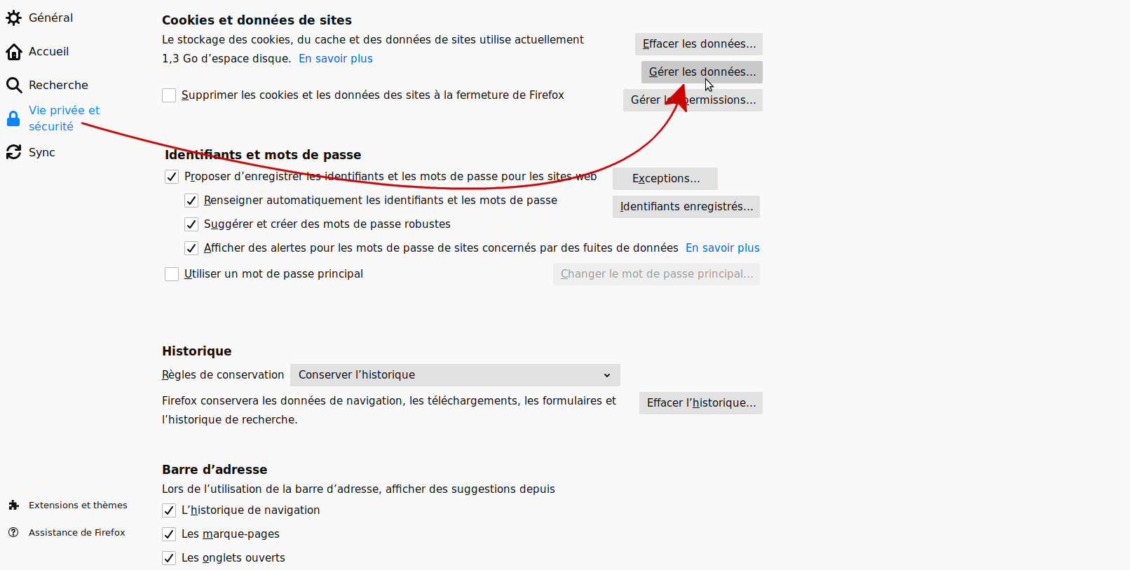 - Aller dans la section "Vie privée et Sécurité" et faire défiler jusqu'à "Cookies et données de sites"