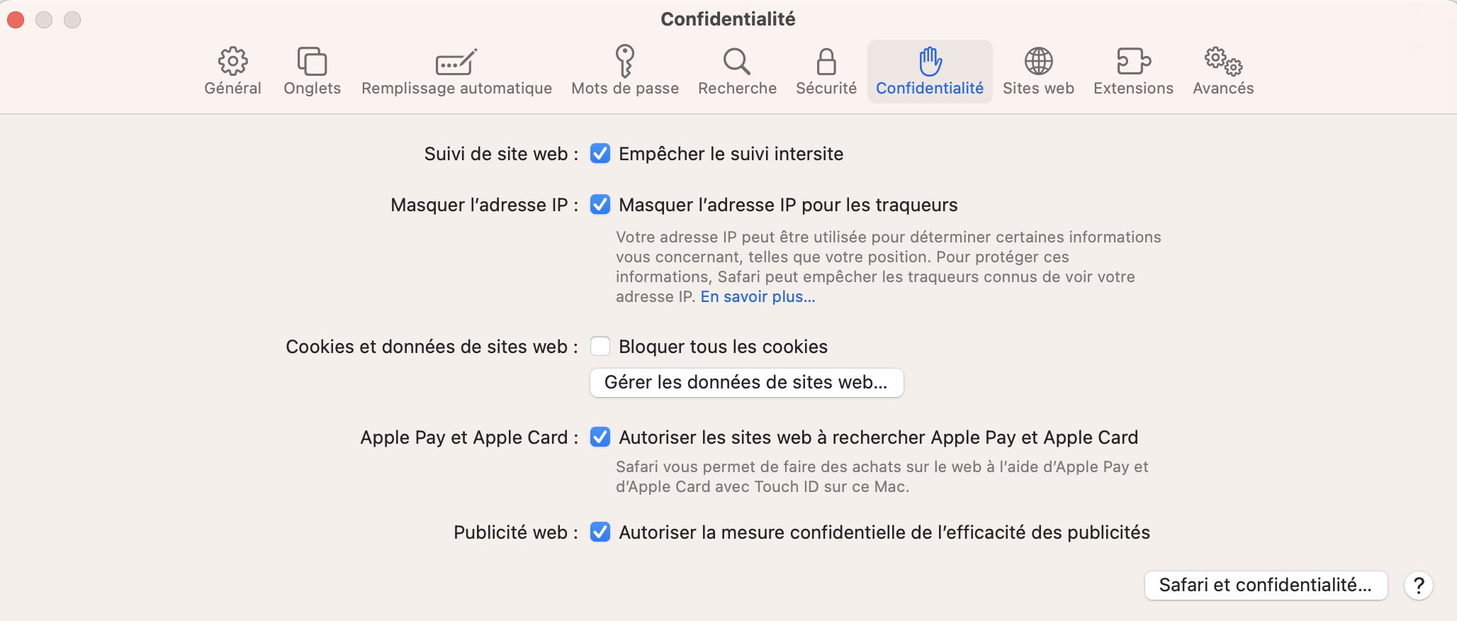 - Accéder aux préférences de Safari en naviguant dans le menu Safari > Réglages