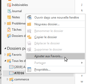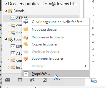 Faire alors un clic droit sur le dossier mis en favori et choisir "Propriétés..." :