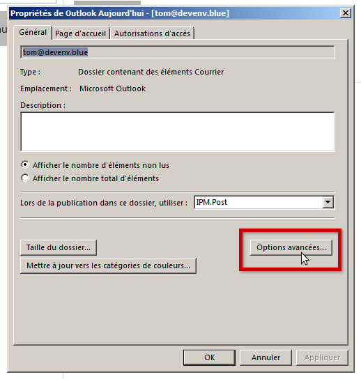Dans la fenêtre qui s'ouvre, cliquer sur le bouton "Options avancées..." :