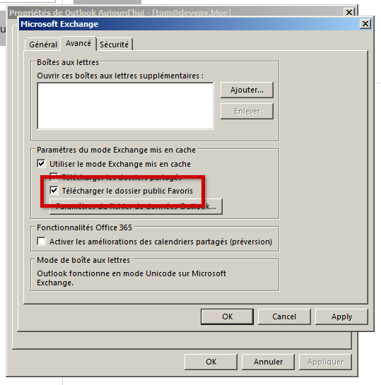 Dans la nouvelle fenêtre, cocher la case "Télécharger le dossier public Favoris", qui permettra que le contenu du dossier, désormais considéré comme des contacts, soit synchronisé sur le poste :