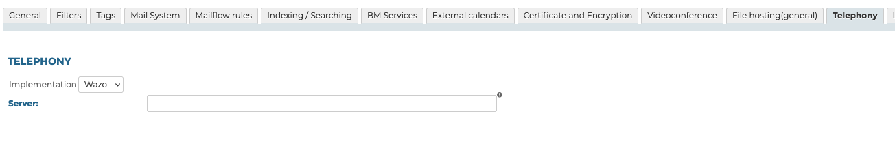 Dieses Dokument beschreibt die Installation und Konfiguration der BlueMind Plugins, die eine Verbindung mit dem Produkt Wazo ermöglichen.
