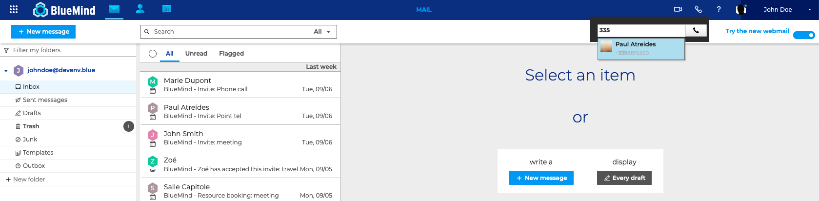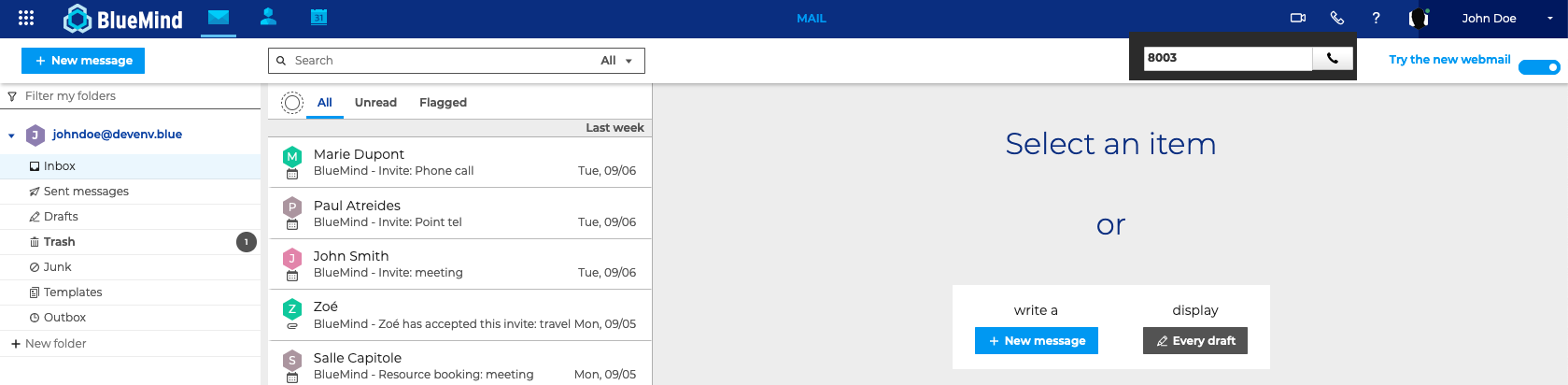 Es ist notwendig, das BlueMind Benutzerkonto über ein externes Konto mit dem Konto Wazo zu verbinden.