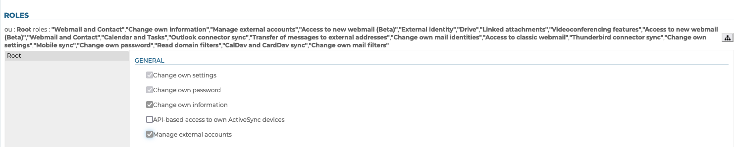 - Aktivieren Sie die Rolle "Seine externen Konten verwalten", auf der Registerkarte "Allgemein":