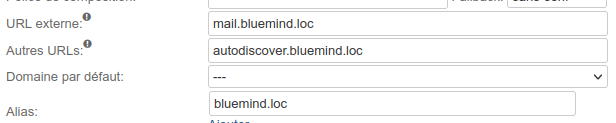 Die URL von autodiscover wird in der Regel gebildet, indem der erste Teil der externen URL durch das Schlüsselwort autodiscover ersetzt wird. Zum Beispiel für den externen URL-Server https://mail.bluemind.loc, wird die Autodiscover-URL https://autodiscover.bluemind.loc sein.